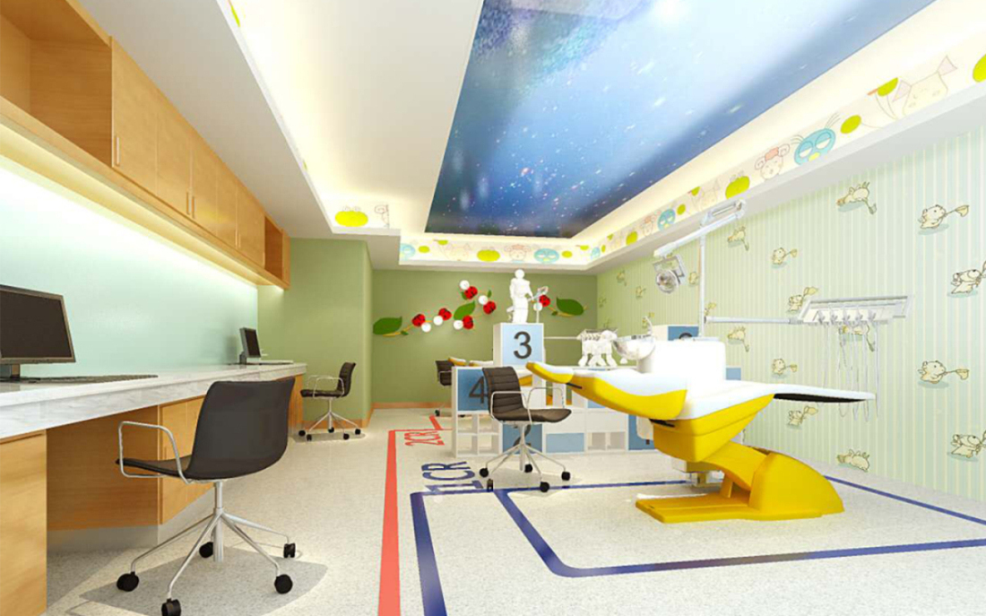 兒童等候區采用“綠野仙蹤”的夢幻理念,充滿童趣的氛圍,消除兒童的等候緊張感,裝修采用柔軟無棱角設計,避免兒童的碰撞亂傷。